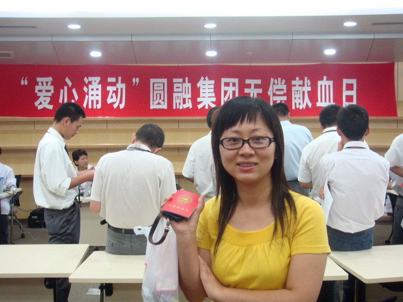 下午13点30分,市中心血站的采血车如约而至,早已等候多时的同事中,既有刘总等集团领导,也有许丽娟等入职刚二个月的新同事,既有多年坚持无偿献血的公益活动热心者,也有初次参与刚踏入社会的热血青年,大家在医生的引导下,井然有序地填写献血表格,进行身份登记。随后依次测量血压、检验血型,由集团培训室布置而成的验血室内人头攒动、笑声不断,大家都为能够为社会献上自己的爱心而感自豪。