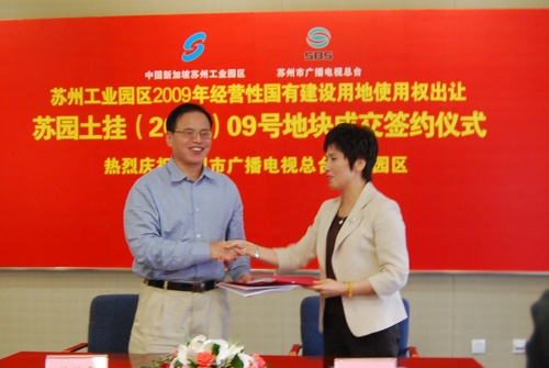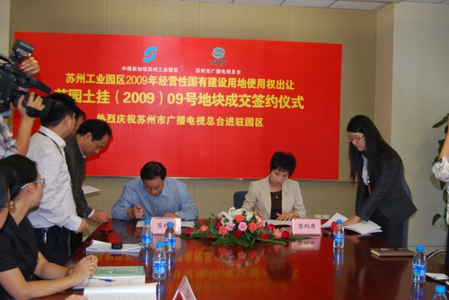 苏州现代传媒大厦的选址尘埃落定。10月19日,苏州广播电视总台和苏州工业园区国土房产局正式签订了《国有建设用地使用权出让合同》,这也意味着,在不久的将来,苏州广电总台总部将入驻苏州工业园区。
