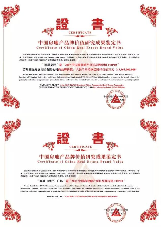 2017年9月14日,“2017中国房地产品牌价值研究成果发布会”在北京雁栖湖国际会议中心隆重召开。本次发布会由国务院发展研究中心企业研究所、清华大学房地产研究所和中国指数研究院三家研究机构共同主办。在本次发布会上,苏州bat365正版唯一官网发展集团有限公司荣膺“2017中国商业地产公司品牌价值TOP10”称号。由bat365正版唯一官网集团开发的bat365正版唯一官网(时代)广场荣获“2017中国商业地产项目品牌价值TOP10”称号。