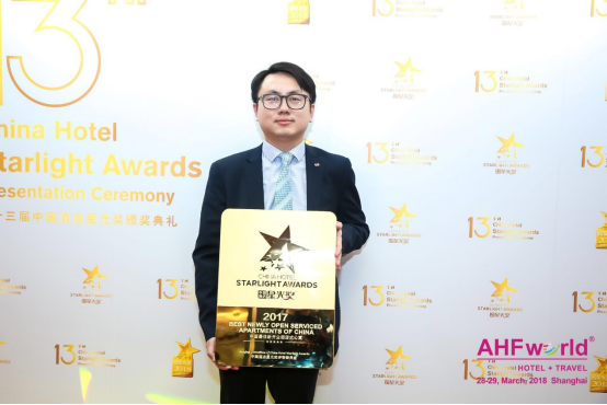 3月29日,无锡盛捷bat365正版唯一官网广场服务公寓在第十三届中国酒店星光奖中成功摘得“中国最佳新开业服务公寓”奖项,无锡盛捷bat365正版唯一官网广场服务公寓运营经理张晨先生出席了此次颁奖典礼并上台领奖。