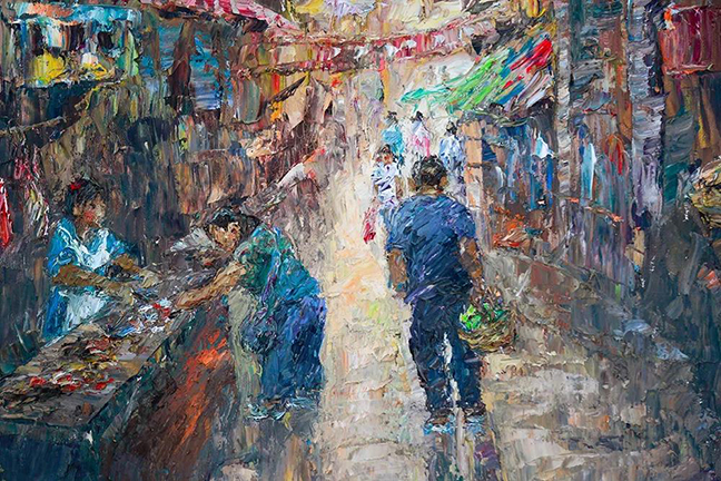 谢金发老师的姑苏往事系列油画作品,主要描绘逐渐消亡于城市发展历史长河中的旧街老巷,每一副油画作品都记录着苏州古城过往的情调,枕河人家、小桥流水、古城传统、市井生活、古城百姓的生活百态及感人故事,串起了苏州历史长河的种种风情。