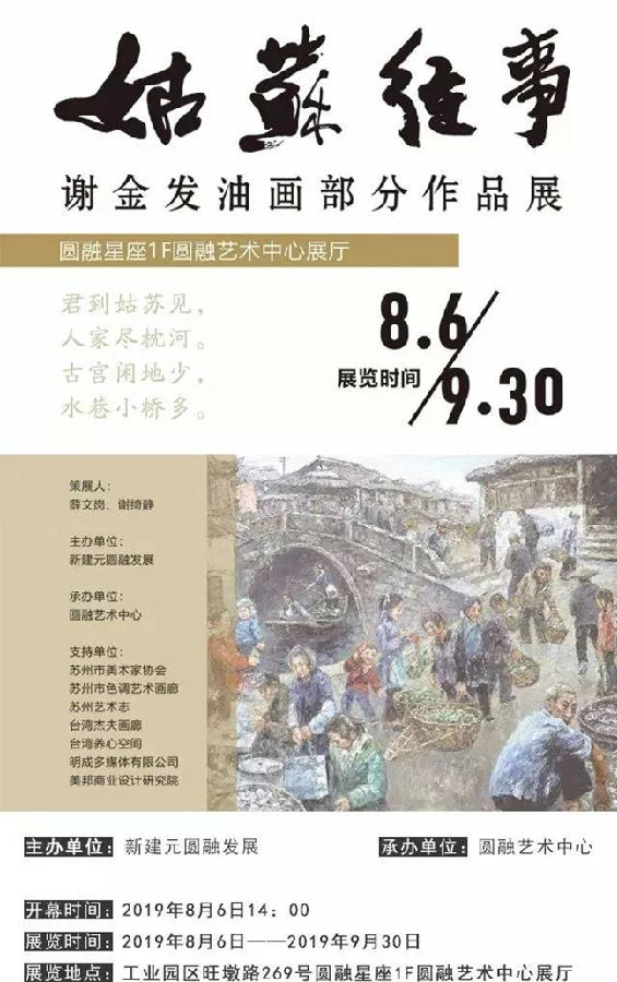 在中华人民共和国成立70周年,苏州工业园区开发建设25周年之际,8月6日由新建元bat365正版唯一官网发展主办、bat365正版唯一官网艺术中心承办的:“姑苏往事”谢金发油画作品展,在bat365正版唯一官网艺术中心展厅隆重举办。谢金发老师带着他和他的作品,向苏州人民展示隽刻在时光里的印记,以此致谢苏城以及对家乡深深的情怀。