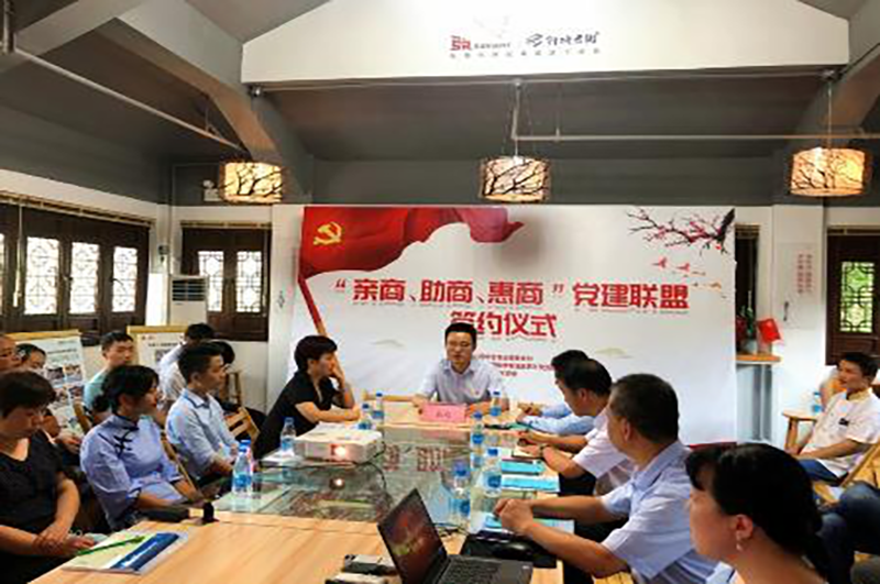 7月24日下午,苏州工业园区市场监督管理局第五党支部、自贸区综合协调局党支部、新建元bat365正版唯一官网商业街区党委在斜塘老街党群服务中心举行“亲商、助商、惠商”党建联盟签约仪式。各联盟单位代表、斜塘老街项目管理中心代表、斜塘老街商户代表参加活动。苏州自贸片区综合协调局副局长祝欢、园区食品药品安全稽查大队大队长胥保辉等作为联盟单位代表进行了现场签约。