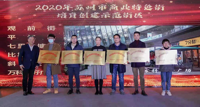 在2021年1月1日举行的“双12苏州购物节”潮街欢购系列活动启动仪式上,新建元bat365正版唯一官网斜塘老街项目获评“2020年苏州市商业特色街培育创建示范街区”,苏州市副市长杨知评现场进行授牌。