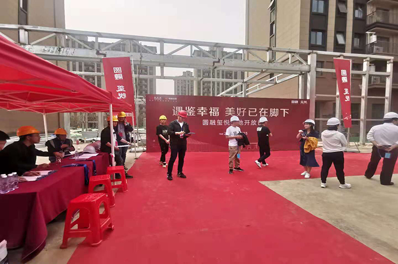 开放日,提前预约的业主签到进场,领取参观许可证、佩戴安全帽以后,分批次和时段前往工地开放区域,工程各参建单位也提前设计了现场安全线路及流程,并统一安排引导讲解,完全展现了整个项目的可靠性和专业性,赢得参观人员的一致认可。