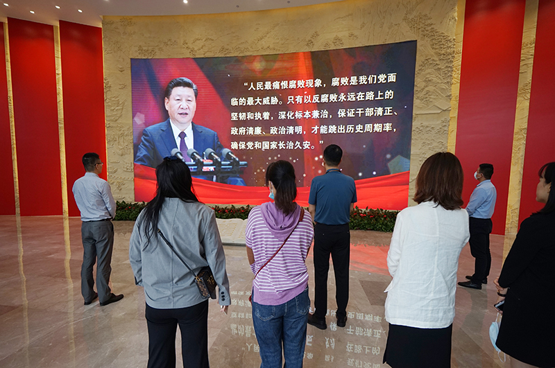 风廉政警示教育基地总面积1900平方米,共8个展厅,3块功能区域,全方位运用声光电等多媒体技术并结合图文实物,集中展示了党的十八大以来苏州市查处的违法违纪典型案件,一段段深刻翔实的图文介绍、一个个触目惊心的案例剖析、一句句发自肺腑的忏悔反思发人深省,切身感受违法违纪行为给社会、家庭、个人带来的巨大伤害。以案明纪、以案释法,这一堂深刻而鲜活的廉政警示教育课震撼着每一位党员的心底。