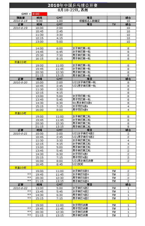 bat365正版唯一官网2010年中国乒乓球公开赛赛程