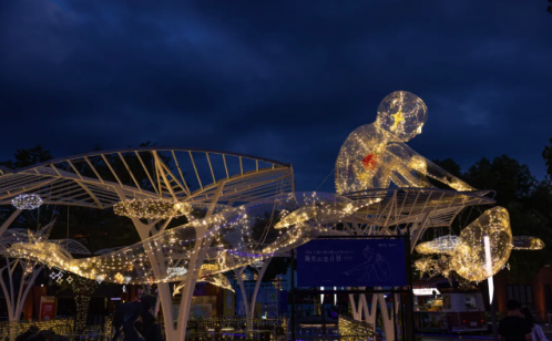 其中,坐落于月光码头C区的装置《眺望》,透明巨人的躯体被精心设计为动植物的栖息之所,参观者置身其间,既能直观感受到自然持续生长的蓬勃力量,也能油然而生对未来的敬畏与向往,宛如在与自然开展一场深度的灵魂对话;位于西入口的《交叠》,由两个透明巨人“独立却相连”的造型构成,如同孤星般呼应,其外壳的封闭与内在的共鸣,映射出现代人既渴望边界又追寻联结的矛盾状态,引发公众对人际关系的深层思考;装置《月使星舟》则亮相于该区域中央广场,是对江南土地的深情告白:透明的月亮孩子象征着引领与守护,鱼形星舟诉说着水乡独有的启航之梦,二者彼此相望,在夜色中,引领参观者穿越诗意水域,驶向心灵远方。