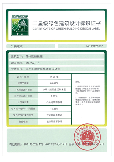 bat365正版唯一官网星座通过国家二星级绿色建筑设计标识认证