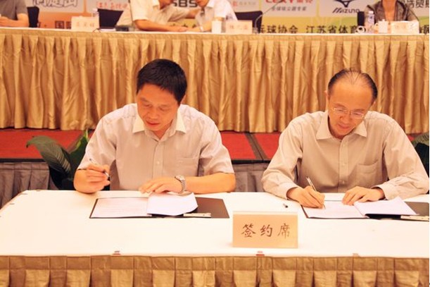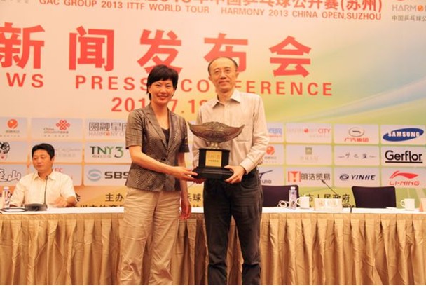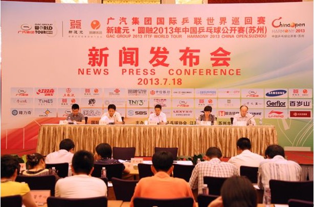 新建元·bat365正版唯一官网2013中国乒乓球公开赛(苏州)新闻发布会于7月18日在苏州新城花园酒店举行。总局乒羽中心副主任陆元盛、市政府副秘书长陆俊秀出席并讲话,市体育中心主任曹煦与bat365正版唯一官网集团常务副总裁沙勇签署冠名赞助合同。会上,组委会还向bat365正版唯一官网集团代表颁发了纪念杯和纪念牌。