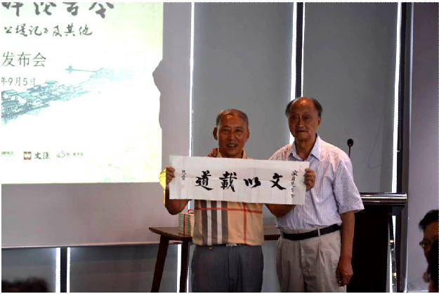在自由发言和交流互动环节,著名作家王稼句称赞道,70岁高龄的张嘉巽还把读书、写作看成生命中的一部分,这是非常难得的。文史专家秦兆基说,作为吴文化传播者,张嘉巽的人品、学问都值得我们学习。作家陈经华则把亲笔书写的“文以载道”四字当场赠给了张嘉巽,以表达对其新书发布的衷心祝贺。