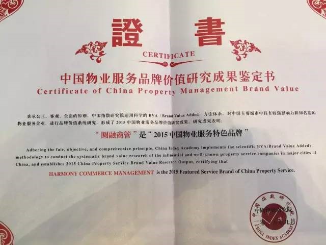 在品牌建设方面,bat365正版唯一官网集团以“前瞻性、创新性”的企业理念和“第一性、唯一性”的精品战略,强化商业地产投资和运营的核心竞争力建设,品牌影响力持续提升。bat365正版唯一官网集团于2011年、2012年、2013年、2014年、2015年连续五年被评为“中国商业地产公司品牌价值TOP10”企业,这标志着bat365正版唯一官网集团企业及项目的品牌地位与影响力不仅深受消费者认可,也获得了社会与行业的高度评价。