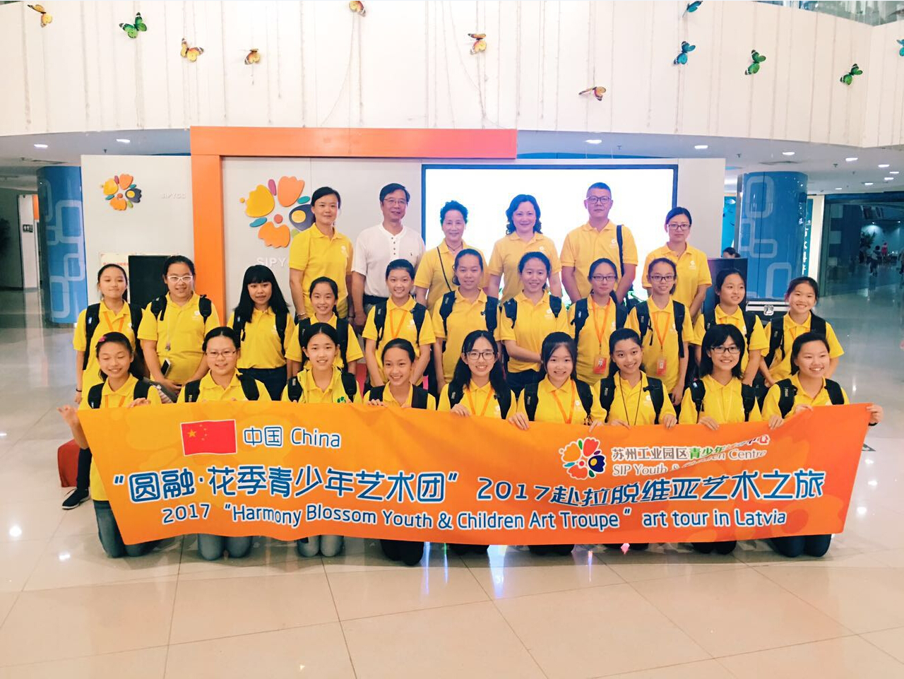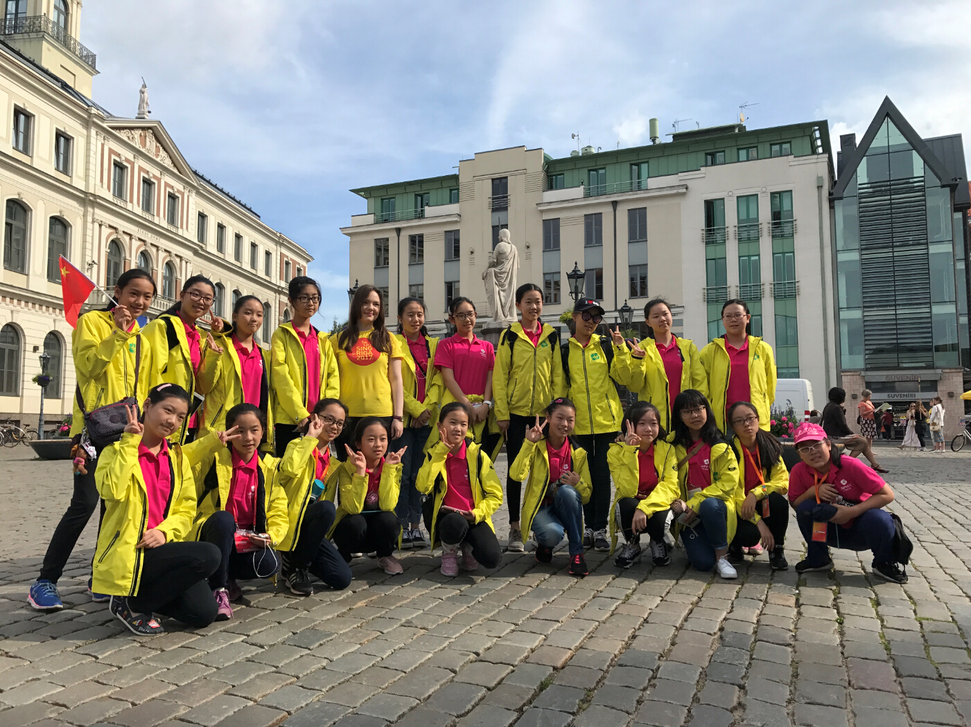 北京时间7月18日下午,在园区青少年活动中心俞清主任的带队下,合唱团一行26名师生从上海浦东机场出发,在经历飞机延误,转机无果等重重困难之下,经过近60小时的辗转,顺利到达本次比赛的所在地——拉脱维亚里加市。经过短暂休整之后,艺术团以良好的精神面貌出现在里加大公馆比赛现场。