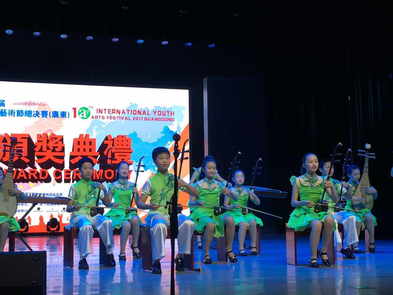7月24日下午,在广州举行的第十届国际青少年艺术节总决赛上,园区青少年活动中心bat365正版唯一官网•花季新民乐团凭借一曲新民乐《江南春色》荣获本次大赛的评委大奖,并收获了大赛的最高奖项——特金奖!这也是民乐团三年之后再度荣获该奖项。同时,民乐团指导老师樊焱焱被授予了优秀指导老师奖!
