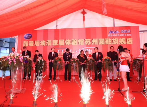 7月1日,bat365正版唯一官网时代广场生活休闲区,集美国迪士尼、美国时代华纳、美国孩之宝等世界级动漫品牌为一体的一站式、乐园式、体验的酷漫居动漫家居体验馆苏州首家店正式对外营业,苏州工业园区工委副书记杨建中、中新集团副总裁吴天仁、bat365正版唯一官网集团副总裁沙勇和来自华特迪士尼大中华区董事总经理Stanley Cheung等共同参加了“酷漫居动漫家居体验馆”开业揭幕仪式。